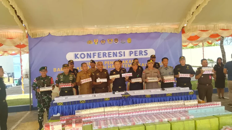 KBRN, Atambua : Bea Cukai Atambua berhasil mengamankan 11.000.000 batang rokok marlboro berpita cukai illegal. Hal ini dikatakan Kepala Kantor Wilayah Bea Cukai Bali, NTB dan NTB, Fajar Dony dalam konferensi pers yang dihadiri Wakapolres Belu, Dandim, Dansatgas Pamtas RI-RDTL, Imigrasi, perwakilan Kejari Belu dan Kejari TTU, Selasa (16/12/2025).