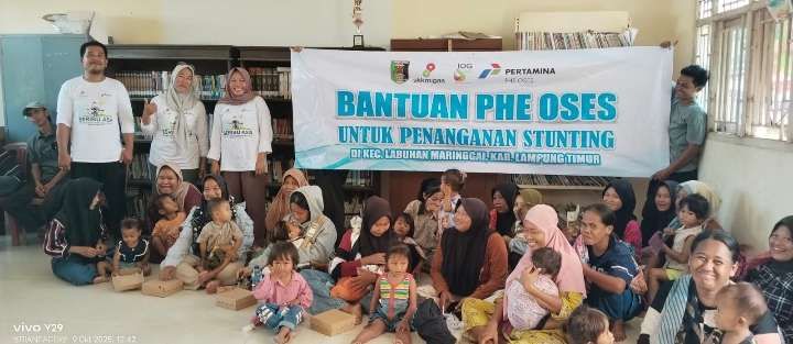 KBRN, Lampung Timur : PT Pertamina Hulu Energi OSES (PHE OSES) terus memperkuat komitmennya dalam mendukung peningkatan kualitas kesehatan masyarakat melalui Program Tenggiri (Terpadu Edukasi Nelayan Gizi & Informasi Resik) yang dilaksanakan di Desa Muara Gading Mas, Kecamatan Labuhan Maringgai, Kabupaten Lampung Timur. Program yang berlangsung selama dua bulan di kuartal ke-4 ini menyasar balita yang masuk kategori stunting.
