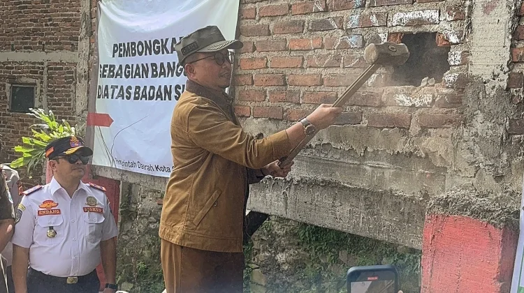 KBRN, Cimahi: Pemerintah Kota Cimahi menertibkan sejumlah bangunan liar yang berdiri di atas aliran Sungai Cibaligo, Kelurahan Cigugur Tengah Kota Cimahi, Selasa (16/12/2025). Penertiban dilakukan secara terpadu oleh Satpol PP Kota Cimahi bersama Dinas PUPR, Kejari Cimahi, Dinas Perhubungan, jajaran kepolisian, dan TNI.
