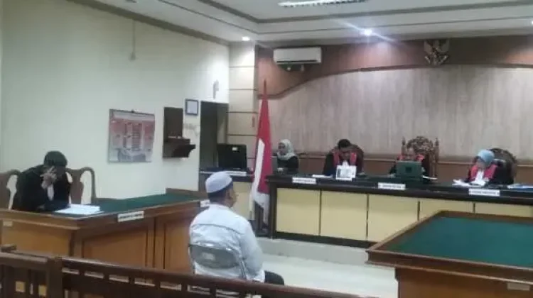Terdakwa Taufiqur Rahman sendiri hadir mengenakan baju koko putih dan kopiah senada. Ia tampak duduk sendiri tanpa didampingi penasihat hukum.