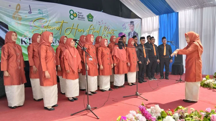 KBRN,Lebak: 36 peserta lomba karaoke dan 4 grub paduan suara memeriahkan peringatan Hari Amal Bakti (HAB) ke-80 kementerian Agama (Kemenag) Kabupaten Lebak. Kegiatan yang dilaksanakan Selasa (30/12/2025) ini berlangsung di halaman kantor Kemenag Kabupaten Lebak. Lomba Paduan Suara khusus menyannyikan lagu Mars Kementerian Agama RI ini diikuti oleh keluarga besar Kantor Kemenag Kabupaten Lebak.