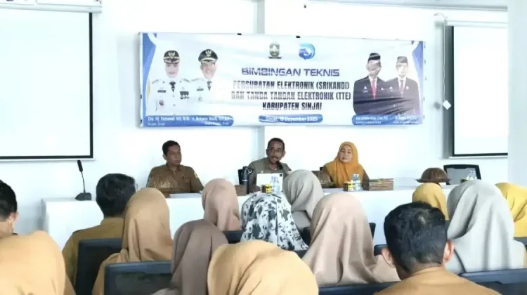 KBRN, Sinjai: Pemerintah Kabupaten Sinjai mendorong percepatan transformasi administrasi digital melalui Bimbingan Teknis Persuratan Elektronik SRIKANDI dan Tanda Tangan Elektronik (TTE) yang digelar Dinas Kominfo dan Persandian, di Aula Serba Guna Dispusip Sinjai, Senin (15/12/2025). Kegiatan ini menjadi langkah strategis untuk memangkas proses birokrasi yang selama ini masih bergantung pada sistem manual.
