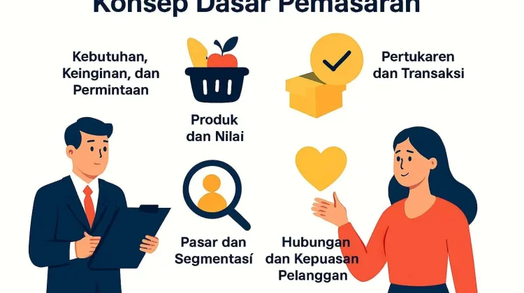 Konsep dasar pemasaran mencerminkan kompleksitas dan kedalaman fungsi pemasaran dalam dunia bisnis. Dengan memahami elemen-elemen inti seperti kebutuhan, nilai, pertukaran, dan hubungan pelanggan, perusahaan dapat merancang strategi yang tidak hanya meningkatkan penjualan, tetapi juga membangun fondasi yang kuat untuk pertumbuhan jangka panjang. Oleh karena itu, pemasaran harus dipandang sebagai proses strategis yang integral dalam pengelolaan organisasi dan penciptaan nilai bersama.