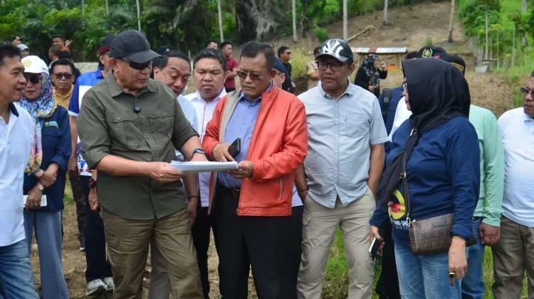 KBRN, Gorontalo - Gubernur Gorontalo Gusnar Ismail bersama Ketua Satgas Nasional Hilirisasi Industri Ayam Terintegrasi Pangan Ali Agus melakukan peninjauan lokasi pencanangan dan lahan pembangunan pabrik pengolahan ayam serta pakan pada Minggu (11/1/2026). Peninjauan dilakukan di tiga titik yang berada di kecamatan Anggrek diantaranya desa Putiana, Pelabuhan Anggrek serta Desa Tolongio.