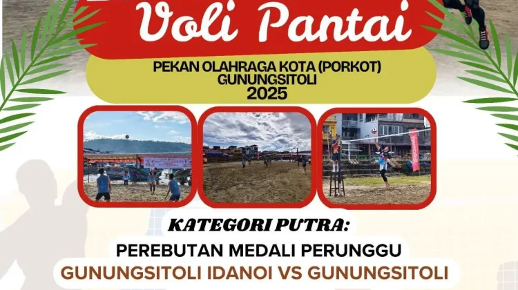 KBRN, Gunungsitoli: Akhirnya babak final cabang olahraga Bola Voli Pasir/Pantai pada Pekan Olahraga Kota (Porkot) Gunungsitoli tahun 2025, akan digelar siang ini di Pantai Taman Yaahowu, Gunungsitoli.