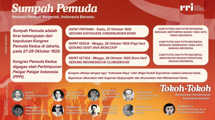 KBRN, Jakarta: Sumpah Pemuda merupakan sebuah ikrar kebangsaan penting yang lahir dari Kongres Pemuda Kedua di Jakarta. Keputusan bersejarah ini tercapai setelah rapat yang digelar selama dua hari penuh pada tanggal 27-28 Oktober 1928.