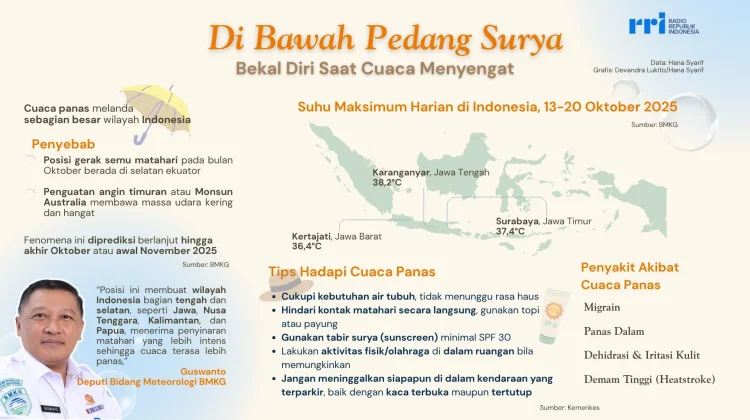Situasi ini diperkirakan akan terus berlanjut hingga akhir bulan Oktober mendatang bahkan sampai memasuki awal bulan November 2025. BMKG mencatat beberapa suhu maksimum harian yang cukup tinggi selama periode 13 hingga 20 Oktober 2025 kemarin.
