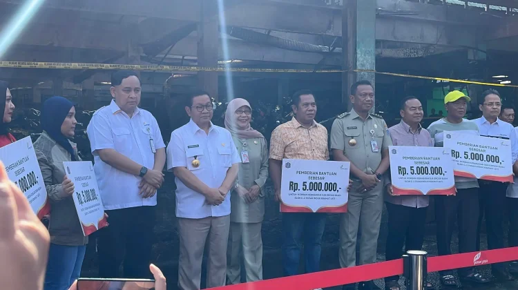 KBRN, Jakarta: Gubernur Jakarta, Pramono Anung memberikan bantuan kepada 121 pedagang yang terdampak kebakaran di Pasar Induk Kramat Jati, Jakarta Timur. Adapun masing-masing pedagang tersebut mendapat bantuan uang tunai sebesar Rp5 juta.