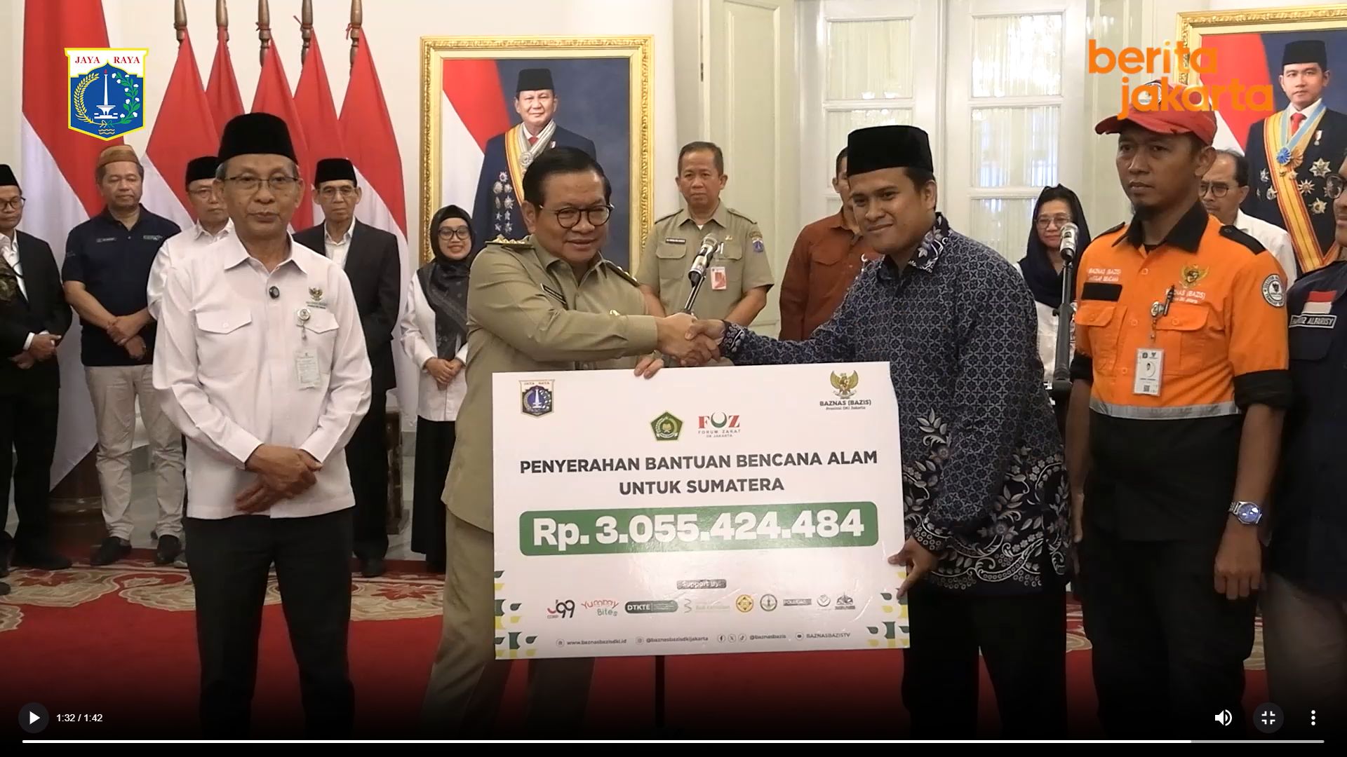 Gubernur DKI Jakarta Pramono Anung melepas bantuan kemanusiaan untuk penyintas bencana di Pulau Sumatra di Balai Kota Jakarta. Bantuan yang diinisiasi Forum Zakat DKI Jakarta ini merupakan kolaborasi Pemprov DKI Jakarta, Baznas Bazis DKI, serta puluhan lembaga amil zakat. (Foto: beritajakarta)