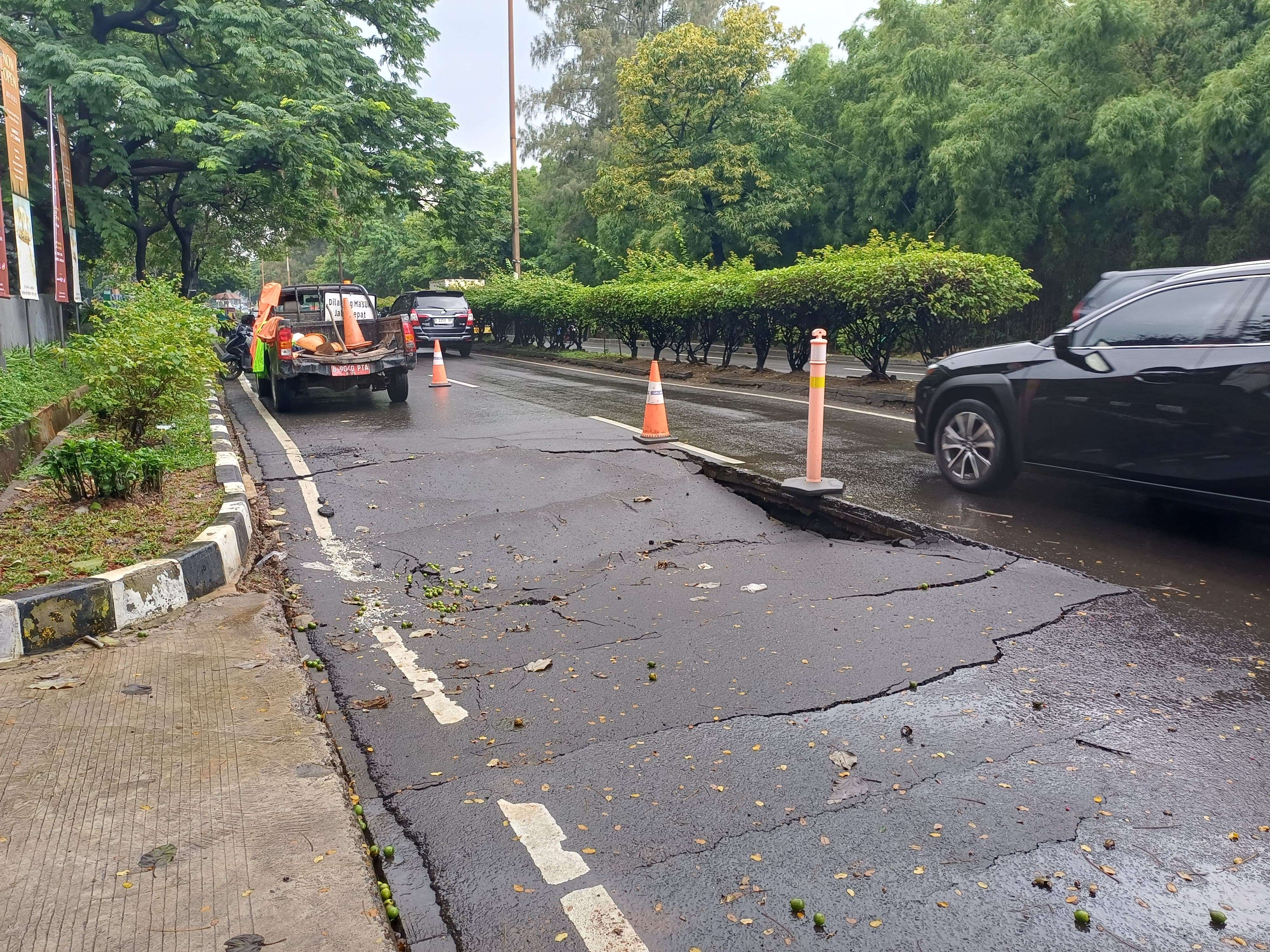 Sebelumnya diberitakan, satu jalur di Jalan Griya Utama, Pademangan, Jakarta Utara di sebelah Arena Lakeside Kemayoran ambles.