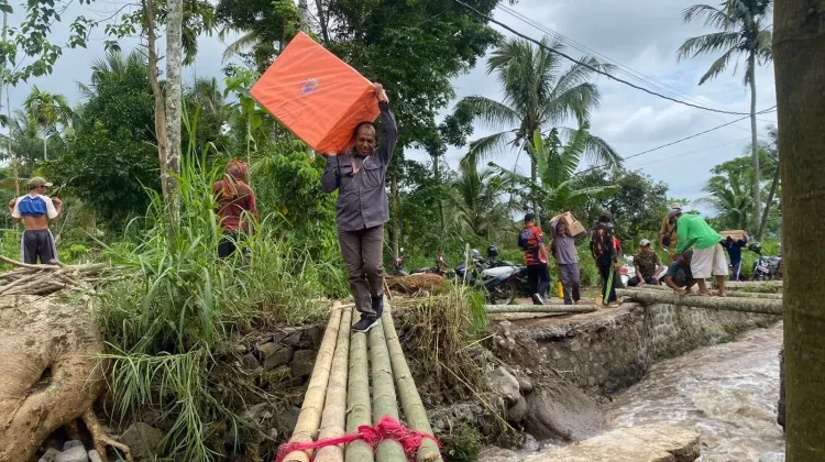 Pembersihan lumpur yang masuk ke rumah-rumah warga juga dibantu oleh tim gabungan berbagai lintas sektor. Tak hanya itu, mereka juga bergotong royong membuat jembatan darurat.