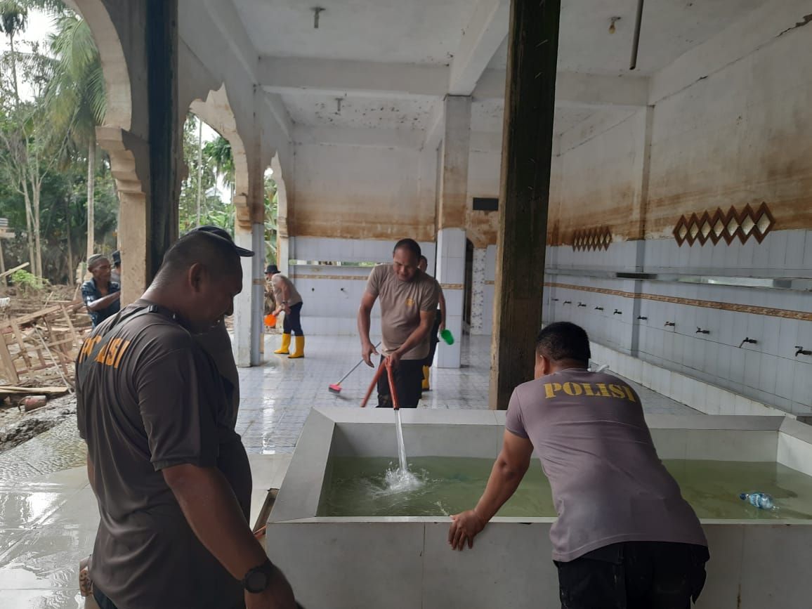 “Kami melaksanakan bakti sosial di masjid ini karena merupakan salah satu rumah ibadah yang terdampak banjir. Tujuannya agar masjid ini dapat segera digunakan kembali oleh warga untuk melaksanakan ibadah secara bersama-sama,” ujar Kompol Salmidin.