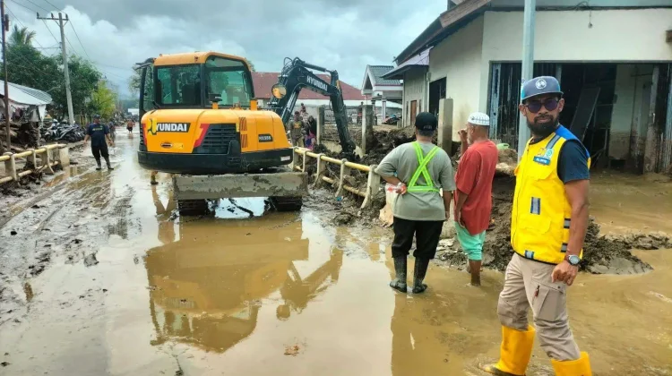 Penanganan dilakukan dengan menurunkan sejumlah alat berat, yakni satu unit excavator, satu unit backhoe loader, satu unit mini excavator, serta empat unit dump truck. Alat-alat tersebut digunakan untuk membersihkan lumpur, kayu, dan material lain yang terbawa banjir dengan ketinggian mencapai 50 hingga 100 sentimeter di badan jalan dan rumah-rumah warga.