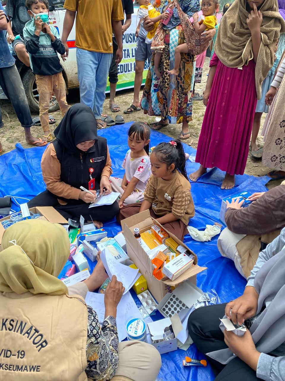 Pelayanan medis dipimpin langsung oleh Jufriyadi, SKM, yang turut menyusuri area perumahan warga terdampak. Pemeriksaan kesehatan dilakukan oleh dr. Risky Ramadhani, didukung Elviana dan Miftahun Jannah untuk pemeriksaan tekanan darah. Pelayanan obat-obatan ditangani oleh Mariana, Deka Novita, dan Mutia Sari. Sementara Mulyadi memberikan konseling kepada warga, dan Rustam bertanggung jawab atas pendistribusian barang donasi.