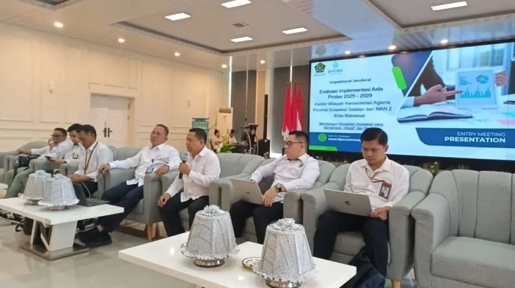 KBRN, Makassar : Inspektorat Jenderal (Itjen) Kementerian Agama Republik Indonesia melaksanakan Entry Meeting Evaluasi Implementasi Program Asta Protas di lingkungan Kantor Wilayah Kementerian Agama Provinsi Sulawesi Selatan. Kegiatan ini berlangsung di Aula Lantai 2 Kanwil Kemenag Sulsel, Selasa (16/12/2025).