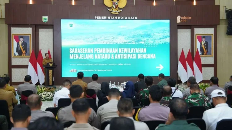 Wali Kota Batu Nurochman menegaskan, momentum Natal dan Tahun Baru perlu dimanfaatkan untuk memperbarui pemetaan situasi wilayah. Menurutnya, setiap perayaan besar berpotensi menimbulkan dampak sosial, gangguan keamanan, hingga risiko kebencanaan yang harus diantisipasi secara terukur dan terkoordinasi.