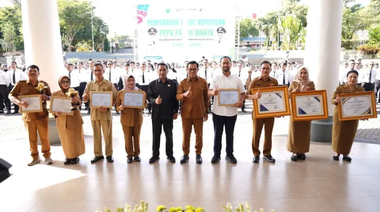 Penghargaan diserahkan langsung oleh Wali Kota Batu, Nurochman, dalam rangkaian apel penyerahan Surat Keputusan (SK) PPPK Paruh Waktu Tahun 2025 yang digelar di Balai Kota Among Tani.