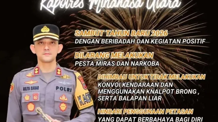 KBRN, Minut: Kapolres Minahasa Utara (Minut) AKBP Auliya Djabar merilis himbauan bagi seluruh masyarakat diwilayah hukumnya dalam menyambut Tahun Baru 2026.
