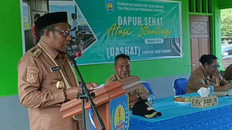 KBRN, Bintuni: Wakil Bupati Teluk Bintuni Joko Lingara meresmikan dapur sehat (Dashat) untuk mengatasi stunting Selasa (16/12/2025) di Kampung Bumi Saniari (SP 3), Distrik Manimeri. Peresmian dapur sehat ini dibarengi dengan penyerahan secara simbolis peralatan masak yang dikelola PKK kampung Bumi Saniari.