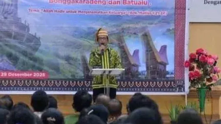 Plt. Sekda Drs. Raden Iwan Kurniawan menyampaikan ucapan selamat Natal kepada seluruh keluarga besar Toraja yang hadir. Ia berharap kedamaian Natal senantiasa bersemi di hati setiap jemaat dan menjadi terang dalam setiap langkah hidup bermasyarakat.