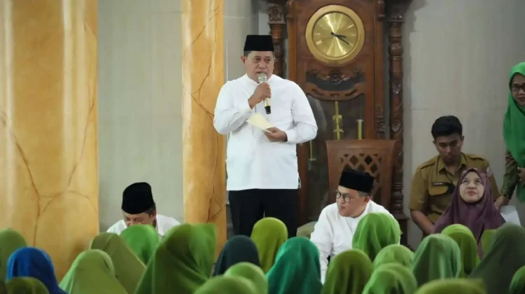 KBRN, Banyuasin: Bupati Banyuasin, Askolani, menunjukkan dukungannya terhadap organisasi keagamaan dengan menghadiri Pengajian Akbar dan Pelantikan Pengurus Ranting Muslimat NU Kelurahan Sukajadi Timur. Kegiatan digelar di Masjid Jamiatul Khoir, Talang Kelapa, Selasa (16/12/2025).