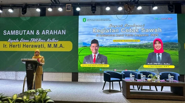 KBRN, Pontianak: Dinas Tanaman Pangan dan Hortikultura (TPH) Provinsi Kalimantan Barat melaksanakan kegiatan Rapat Evaluasi Kegiatan Cetak Sawah yang berlangsung di Hotel Golden Tulip Pontianak pada Senin, 15 Desember 2025. Kegiatan ini merupakan bagian dari upaya pengawasan dan evaluasi terhadap pelaksanaan program cetak sawah yang menjadi salah satu program strategis nasional di bidang pertanian.