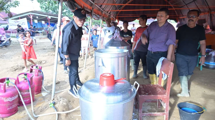 Bupati juga tampak memberikan semangat kepada masyarakat dan memastikan ketersediaan makanan dan logistik bagi masyarakat yang berada di Posko.