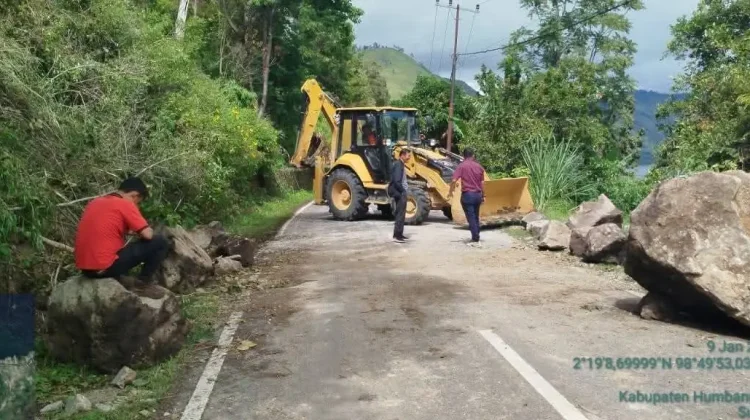 KBRN, Doloksanggul: Pemerintah Kabupaten Humbang Hasundutan bergerak cepat melakukan penanganan dan pembersihan material longsor yang menutupi akses jalan menuju objek wisata Bakkara. Pembersihan dilakukan Jumat, (9/1/2026) di Desa Simangulampe, Kecamatan Baktiraja, sebagai upaya memastikan kelancaran akses masyarakat serta keselamatan pengguna jalan.