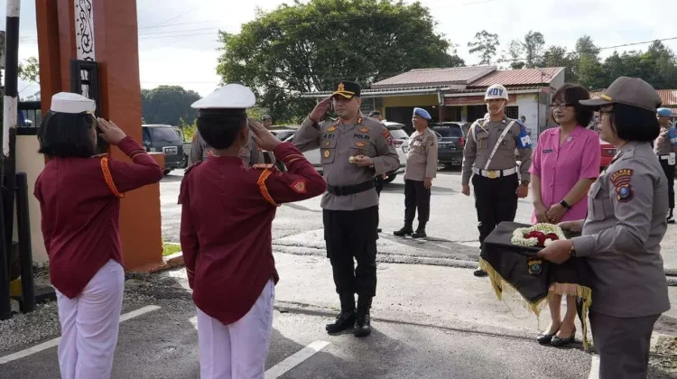 Acara penyambutan Kapolres Humbang Hasundutan berlangsung khidmat. Kegiatan diawali dengan pengalungan rangkaian bunga oleh Polisi Cilik (Pocil) sebagai simbol penghormatan, dilanjutkan dengan jajar kehormatan pasukan dan tradisi pedang pora.
