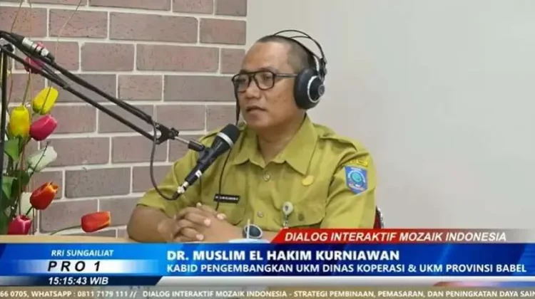 Pada Dialog Interaktif Mozaik Indonesia di Pro 1 RRI Sungailiat, Senin (15/12/2025), Muslim mengharapkan kepada UMKM agar memanfaatkan teknologi digital dalam strategi pemasarannya. Hal itu perlu dilakukan untuk memperluas jangkauan pasar hingga ke tingkat nasional bahkan internasional.