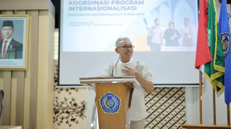 KBRN, Surakarta : Direktorat Reputasi, Kemitraan, dan Urusan Internasional (DRKUI) Universitas Muhammadiyah Surakarta (UMS) menggelar Koordinasi Program Internasionalisasi di Ruang Seminar Lantai 7, Gedung Induk Siti Walidah UMS, Selasa (16/12). Kegiatan tersebut menjadi bagian dari upaya memperkuat strategi internasionalisasi UMS sekaligus meningkatkan reputasi global dan daya saing pemeringkatan internasional.