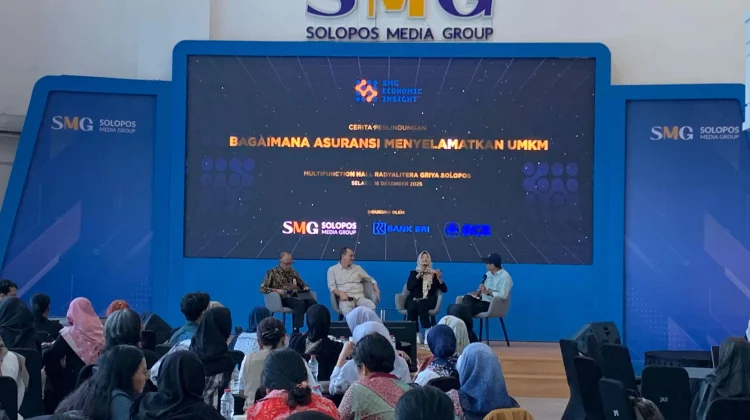 KBRN, Surakarta: Solopos Media Grup (SMG) berkolaborasi dengan Perbankan menghadirkan pembelajaran terkait pentingnya penggunaan asuransi bagi pelaku Usaha Mikro Kecil dan Menengah (UMKM) di Multifunction Hall Radya Literasi pada Selasa (16/12/2025).