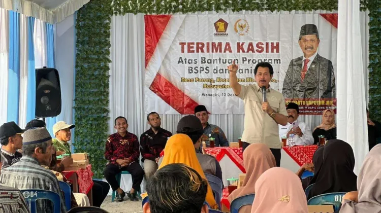 KBRN, Wonogiri: Anggota DPR RI Fraksi Gerindra, Sriyanto Saputro, melakukan sosialisasi Empat Pilar Kebangsaan di Kecamatan Kismantoro, Kabupaten Wonogiri. Kegiatan ini bersamaan dengan peninjauan program BSPS (Bantuan Stimulan Perumahan Swadaya) dari Kementerian Perumahan dan Kawasan Permukiman (PKP).
