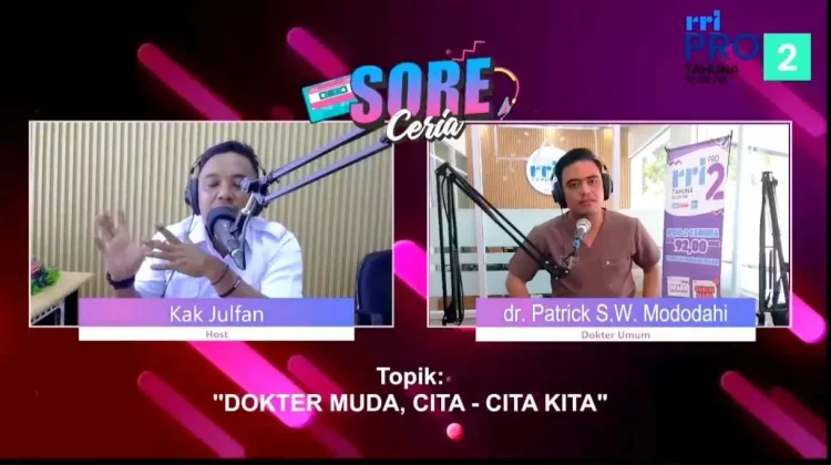 KBRN,Tahuna : Menyandang gelar dokter muda merupakan impian banyak orang. Namun dalam proses dan perjalanannya dinilai tidak mudah. Hal ini diungkapkan oleh dokter Patrick S.W. Mododahi, seorang dokter umum lulusan Fakultas Kedokteran Universitas Pattimura Ambon, dalam segmen Sore Ceria Pro2 RRI Tahuna, Senin (15/12/2025).