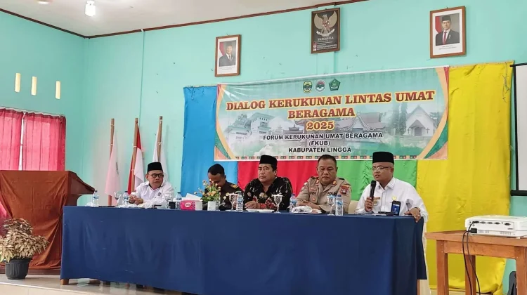KBRN, Lingga: Forum Kerukunan Umat Beragama (FKUB) Kabupaten Lingga menggelar dialog kerukunan lintas umat beragama di Ruang Pertemuan Kantor Desa Sungai Harapan, Kecamatan Singkep, Lingga. Kegiatan ini menjadi wadah silaturahmi sekaligus penguatan sinergi antarumat beragama dalam menjaga harmoni dan persatuan di Kabupaten Lingga.