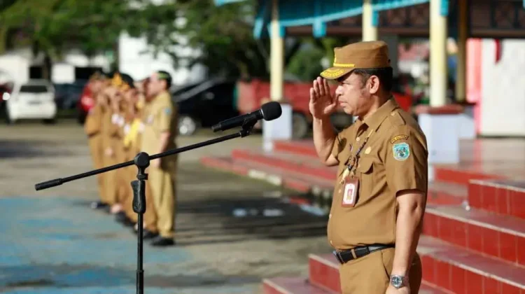 KBRN, Tanjung Selor: Penjabat (Pj.) Sekretaris Daerah Provinsi (Sekprov) Kalimantan Utara (Kaltara) Dr. Bustan, S.E., M.Si memimpin apel pagi gabungan di lingkup Pemerintahan Provinsi (Pemprov) Kaltara di Lapangan Agatis, Senin (15/12/2025).