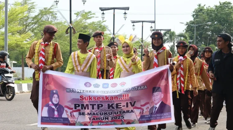 KBRN, Sofifi: Kepala Kantor Wilayah Kementerian Agama Provinsi Maluku Utara secara resmi melepas Pawai Karnaval Perkemahan Madrasah Tingkat Provinsi Maluku Utara Tahun 2025 yang dipusatkan di pelataran Kantor Wilayah Kemenag Maluku Utara, Selasa (30/12/2025).
