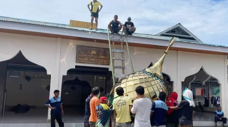 KBRN,Tolitoli : Upaya peningkatan pembinaan kepribadian berbasis keagamaan di Lembaga Pemasyarakatan (Lapas) Kelas IIB Tolitoli kembali mendapat penguatan melalui dukungan langsung dari Pemerintah Daerah Kabupaten Tolitoli. Bentuk dukungan tersebut diwujudkan dengan bantuan pembangunan kubah baru Masjid Darul Hisab yang telah resmi dipasang pada Selasa pagi.