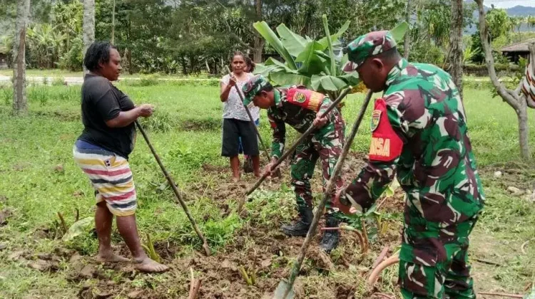 KBRN, Wamena: Bintara Pembina Desa (Babinsa) Koramil 1702-03/Kurulu melaksanakan kegiatan Karya Bakti bersama masyarakat di Kampung Jiwika, Distrik Kurulu, Kabupaten Jayawijaya, Provinsi Papua Pegunungan, pada Selasa (16/12/2025).